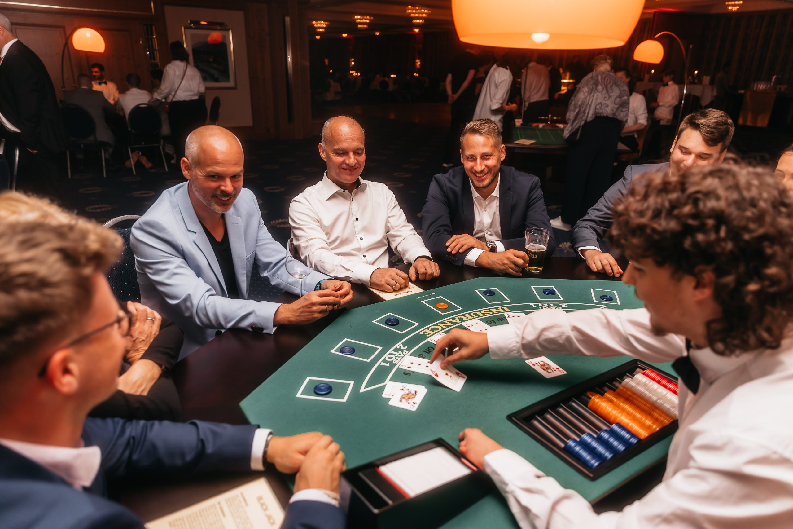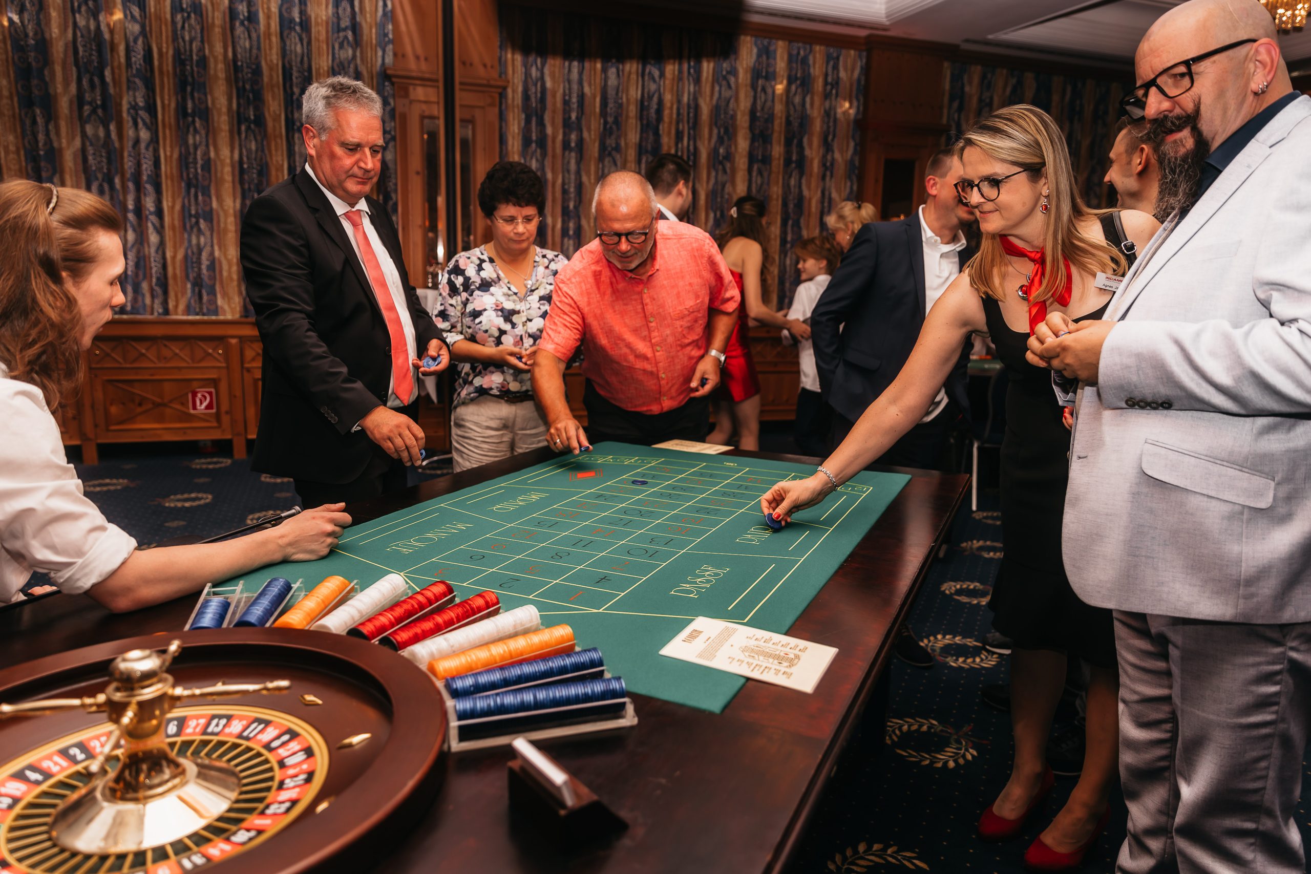 Neben dem geselligen Beisammensein, der Musik und Kulinarik wurde die Feier durch ein mobiles Casino abgerundet. An diesem Abend hatte jeder Gast die Gelegenheit, in die Welt des Glücksspiels einzutauchen, mit Spielgeld sein Können unter Beweis zu stellen und sein Glück herauszufordern, denn die Karten wurden ausgeteilt und die Roulette-Räder gedreht.
