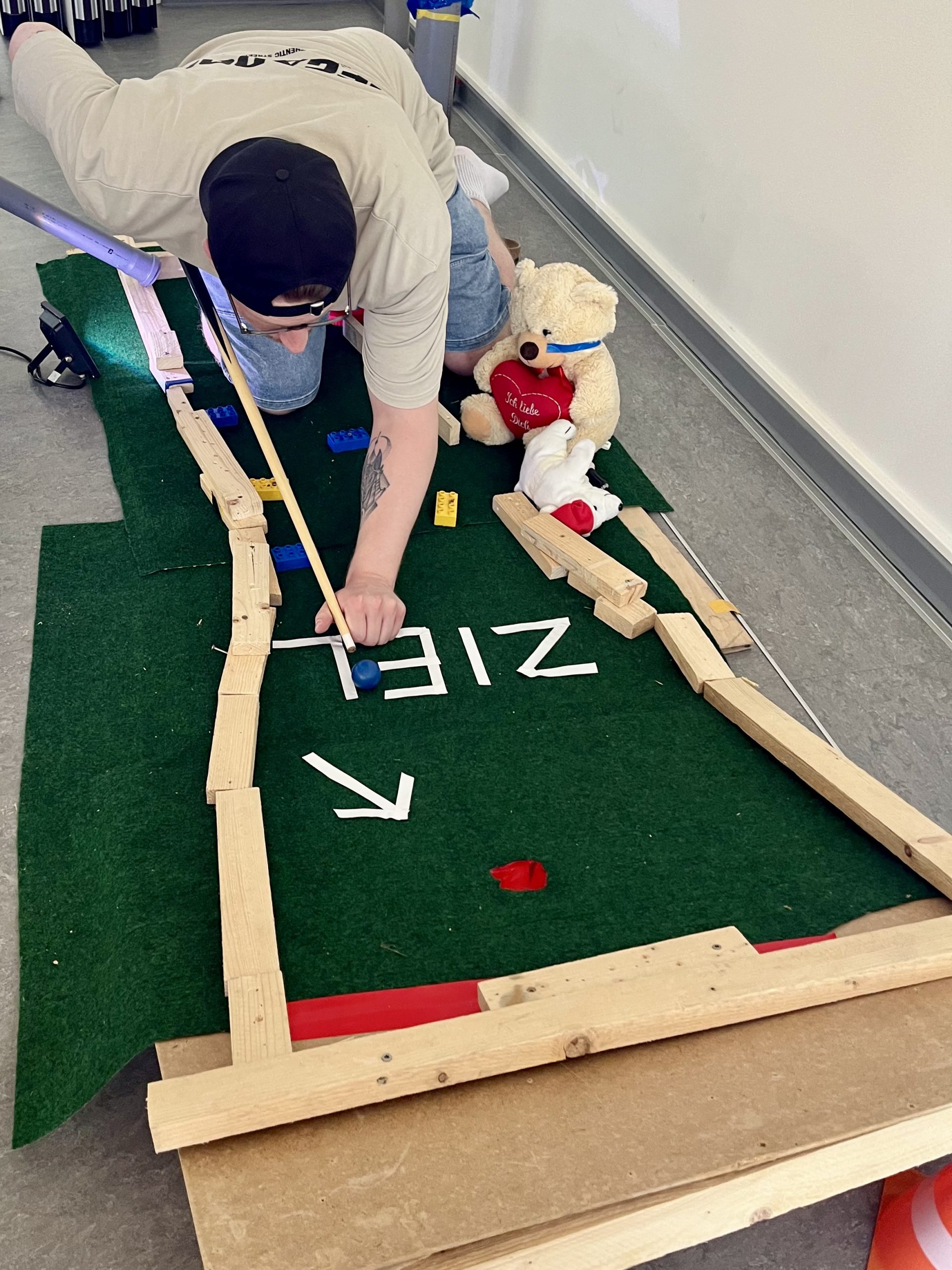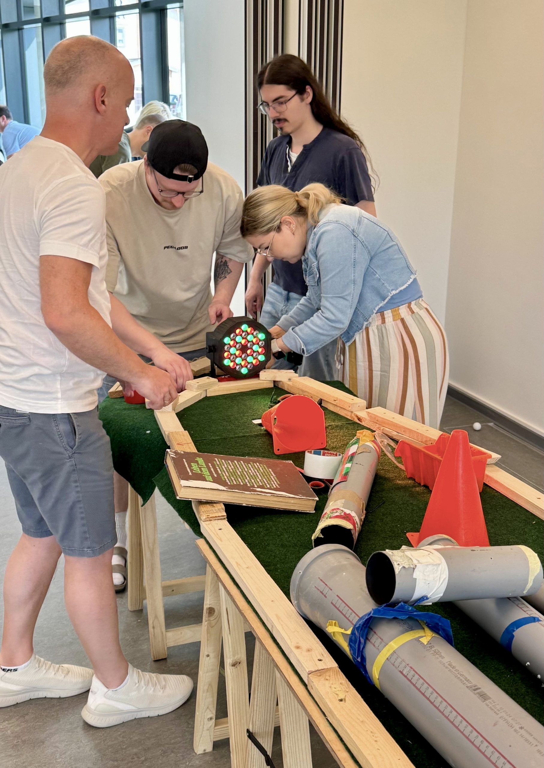 Natürlich durfte auch das gesellige Miteinander nicht fehlen: Nach einem gemeinsamen Abendessen am Freitag startete unser Teambuilding-Programm am Samstag. Mit Unterstützung der “STADTHELDEN” (ein mobiler Teamevent-Anbieter) entstand ein kreatives Crazy Golf-Turnier: Sechs individuell gebaute Minigolf-Parcours, jede Menge kreative Ideen und ein spannendes Finale sorgten für Teamgeist, Spaß und den Titel „Halbgott des Golfs“ für die Siegergruppe. Abends ließen wir den Tag bei einem Cocktailkurs und guter Musik ausklingen – mit hauseigenem DJ und bester Stimmung.